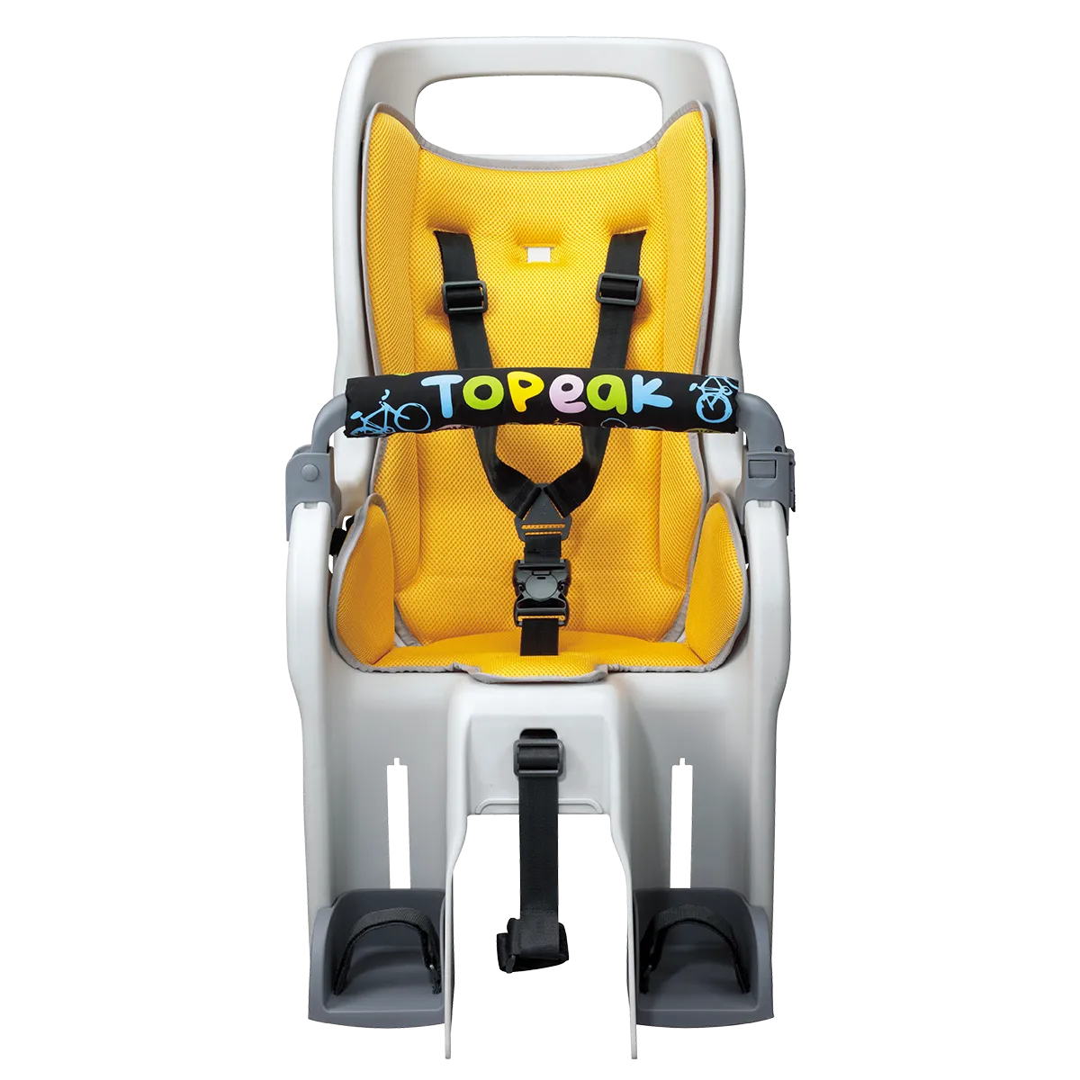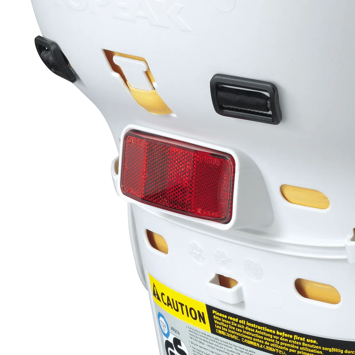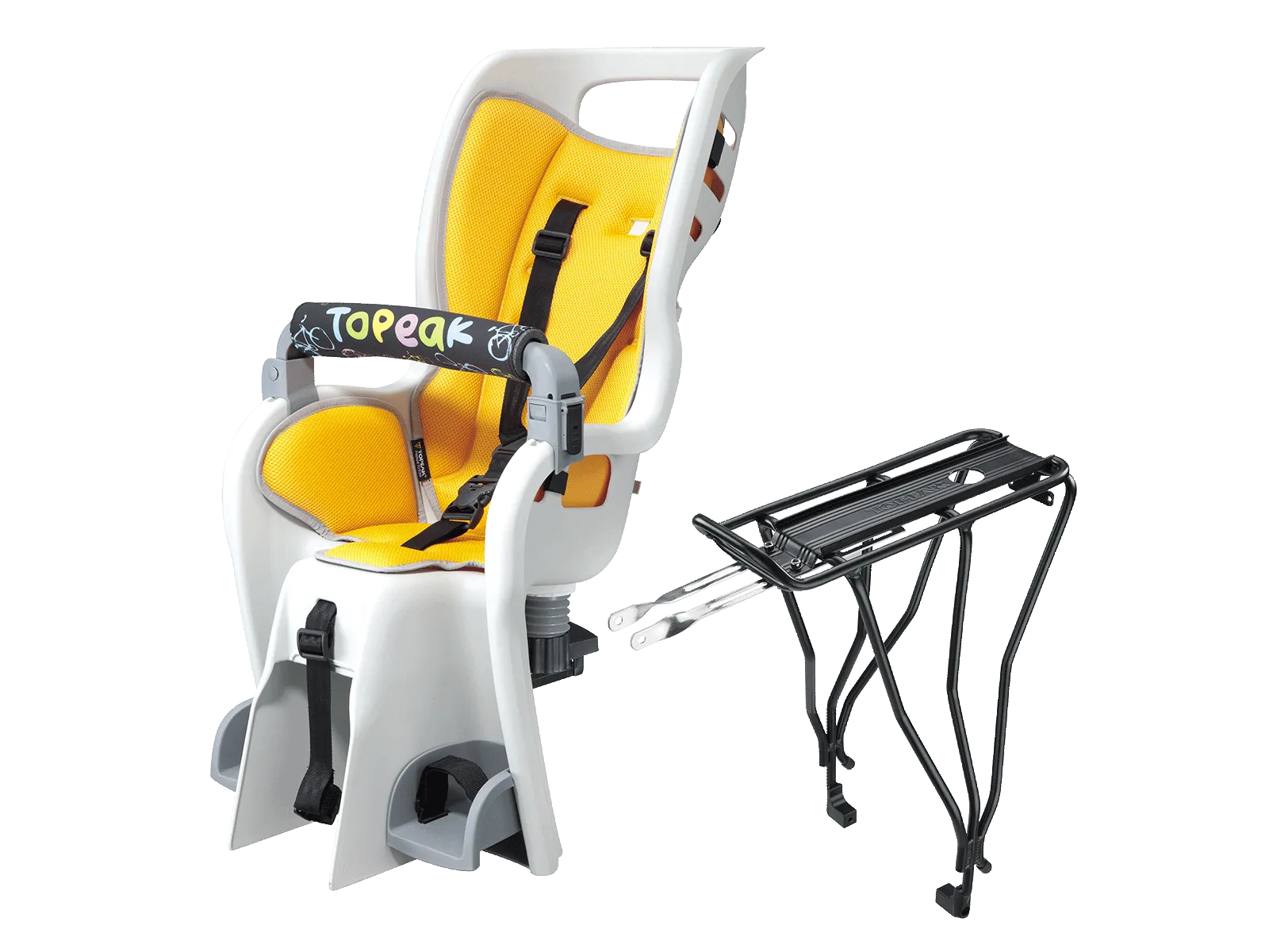 For 29" Wheels with Disc Brakes A wrap-around seat structure creates a virtual cocoon of protection and features an updated shoulder harness with a multiple height adjustment system. An innovative suspension system cushions bumps and jolts and the integrated roll bar provides extra head protection and doubles as a carrying handle. Adjustable footrests and straps keep small feet away from spinning wheels. Child seat complies with stringent European, CPSIA and Proposition 65 safety standards. The included heavy-duty disc mount rack features an innovative BabySeat™ attachment that requires no tools to attach and remove seat from rack. Once the seat is removed, the exposed QuickTrack® system is compatible with all Topeak MTX TrunkBags and MTX Rear Baskets.